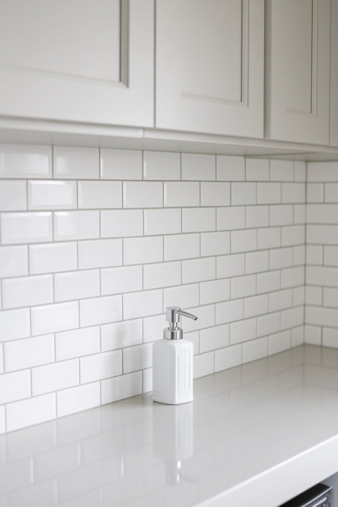 Incorporate metallic or matte-finish accessories to enhance the tile effect, such as brushed nickel hooks or a sleek laundry rod. Add a textured rug or a fabric curtain in coordinating colors for softness. Consider framing small prints or inspiring quotes in minimal frames to break up the pattern. Personalization makes the classic tile look feel uniquely yours, elevating the entire laundry zone.