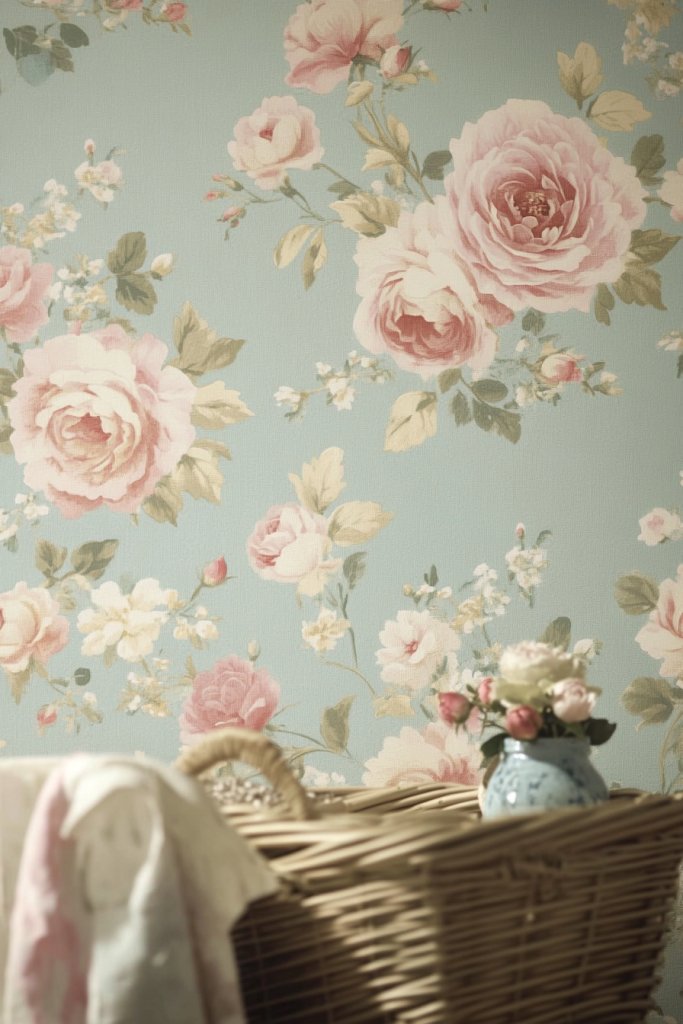 Opt for small-scale floral patterns for a subtle romantic vibe or larger blooms for a bolder statement. Mix with crisp white or pastel-painted furniture to enhance the vintage feel. Seasonal updates could include coordinating fabric curtains or storage baskets in floral prints. For a modern twist, combine floral wallpaper with minimalist decor and metallic accents.