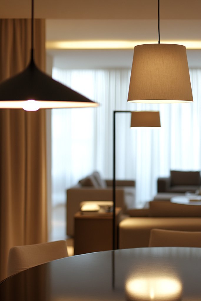 Imagine a living area illuminated by a statement pendant hanging above the seating, casting a warm glow. Floor lamps with adjustable arms provide task lighting for reading or working. Dimmable switches allow you to change the brightness, creating a soft, intimate glow for movie nights or bright light for dinner prep. The layered approach makes every inch of the room feel intentional and balanced.