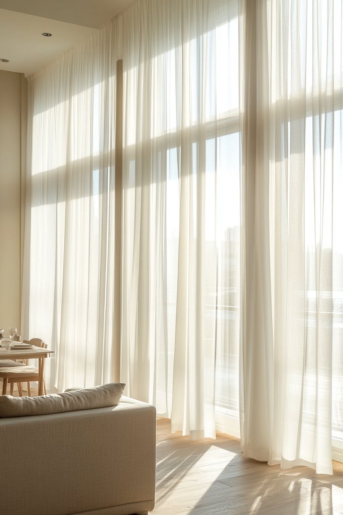 Opt for light, airy fabrics like linen or voile that filter light softly. Choose curtains in neutral shades or subtle patterns that complement your decor. Consider installing blinds or shades behind sheer curtains for privacy without sacrificing brightness. For colder months, heavier drapes can add warmth, but keep sheers as an everyday option.
