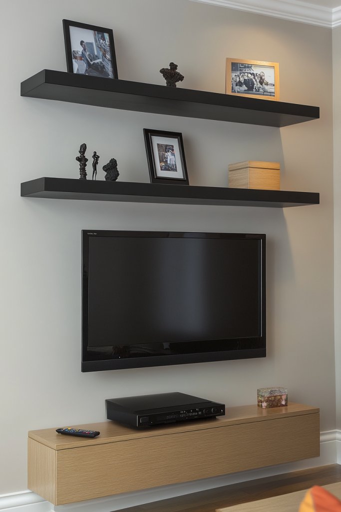 7. Floating Shelves and Wall-mounted Media Units to Save Floor Space