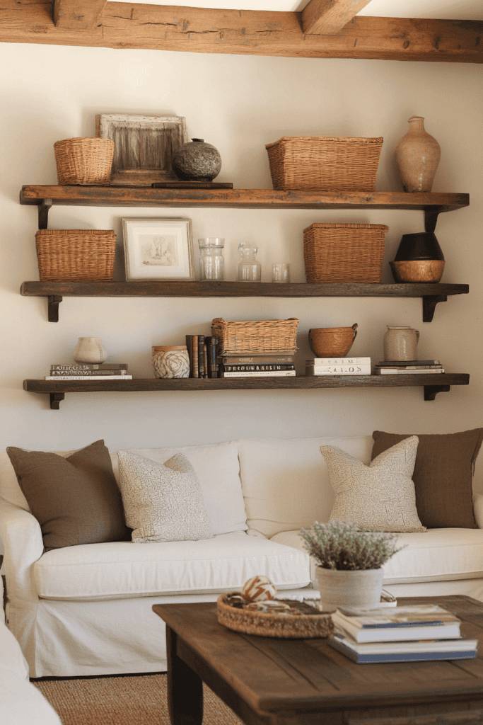 Open shelving is a popular choice for minimalist living rooms because it allows you to display a curated selection of decorative items while maintaining an uncluttered space. The key is to keep the number of items displayed to a minimum—choose a few well-selected pieces that add personality without overwhelming the space. Open shelves also create an open and airy feel, drawing the eye upward and making the room feel larger. This type of shelving is particularly effective in small living rooms where every inch of visual space matters.