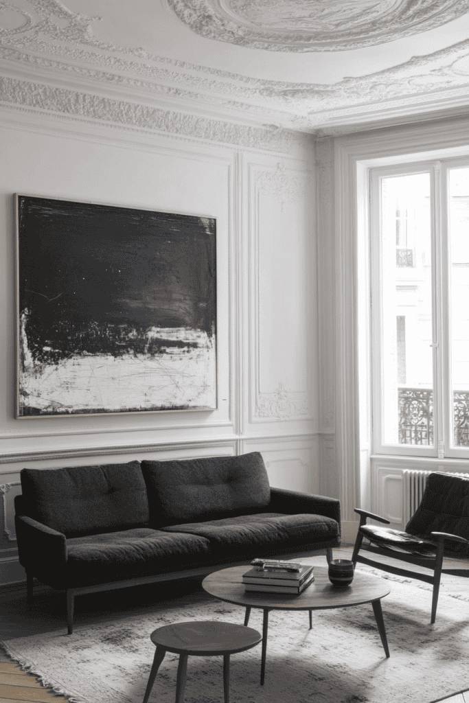 In a minimalist living room, art should be chosen carefully to complement the room’s calm aesthetic without overwhelming the space. A single large statement piece, such as an abstract painting or a monochrome print, can serve as a focal point without crowding the room. By limiting the number of art pieces on the walls, you allow the artwork to breathe and make a more significant impact. This approach keeps the room feeling uncluttered while still giving it personality and visual interest.