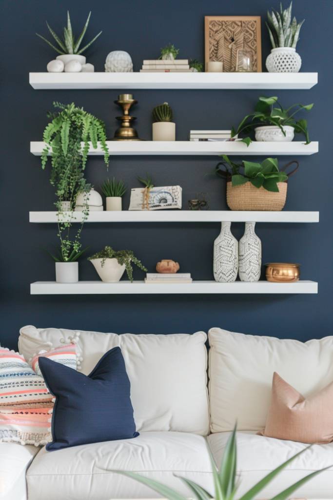 4. Floating Shelves With Decorative Items