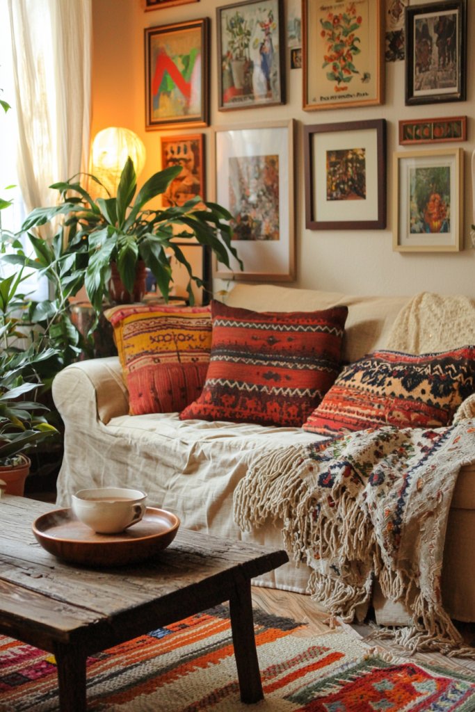 Create a gallery wall filled with eclectic frames, showcasing a mix of photos and playful prints. In this joyful sanctuary, each element contributes to a lively atmosphere, inviting laughter and lightheartedness into your everyday life.