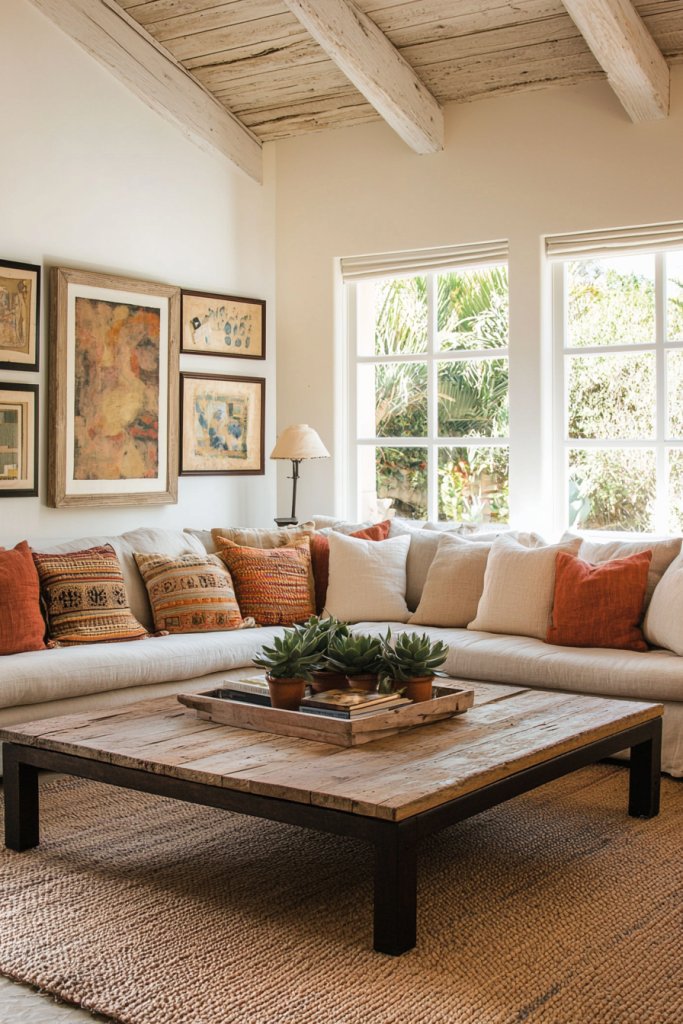 Reclaimed wood for your coffee table or shelves not only adds character but also tells a story, fostering a sense of history. Pair these with a cozy linen sofa in muted tones, creating a perfect balance between comfort and aesthetics.