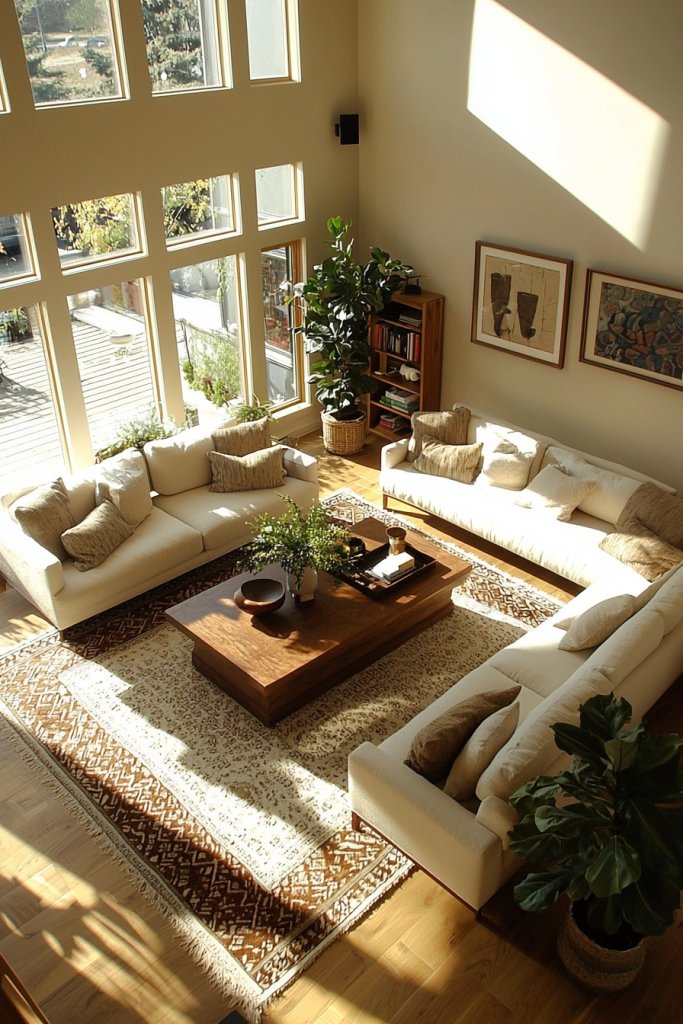 Social zones can be accentuated with a comfortable sectional or a circle of chairs arranged for conversation. Use rugs to visually separate these spaces, enhancing their purpose while adding texture.