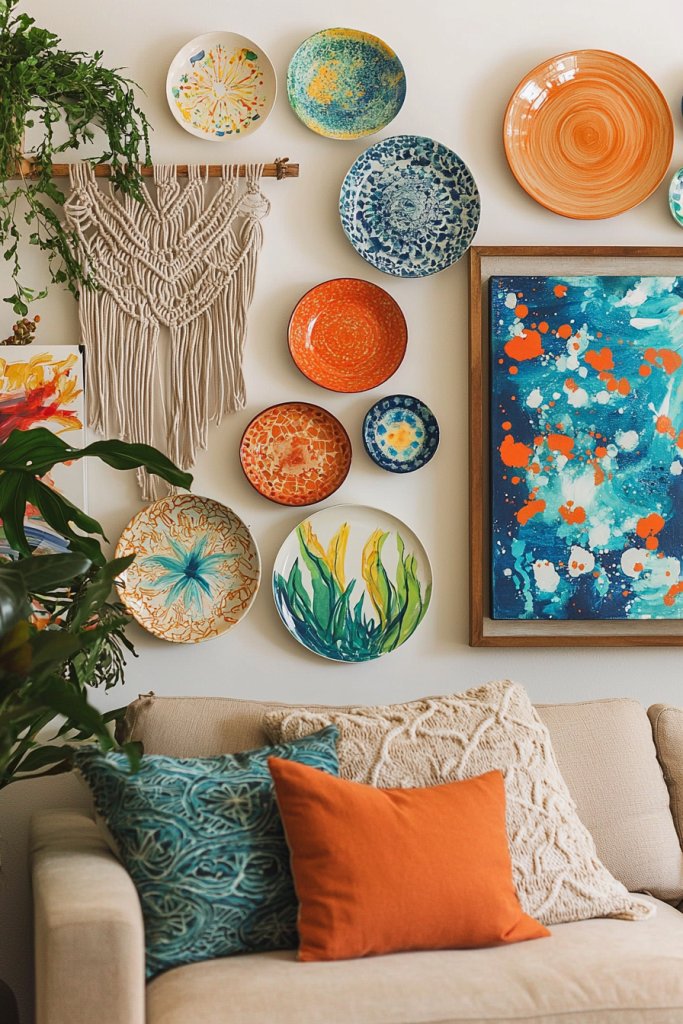 You can also play with different sizes—large plates can anchor a wall, while smaller ones can be grouped for a gallery effect. Don’t shy away from themes; botanical prints or geometric designs can reflect your personal style.