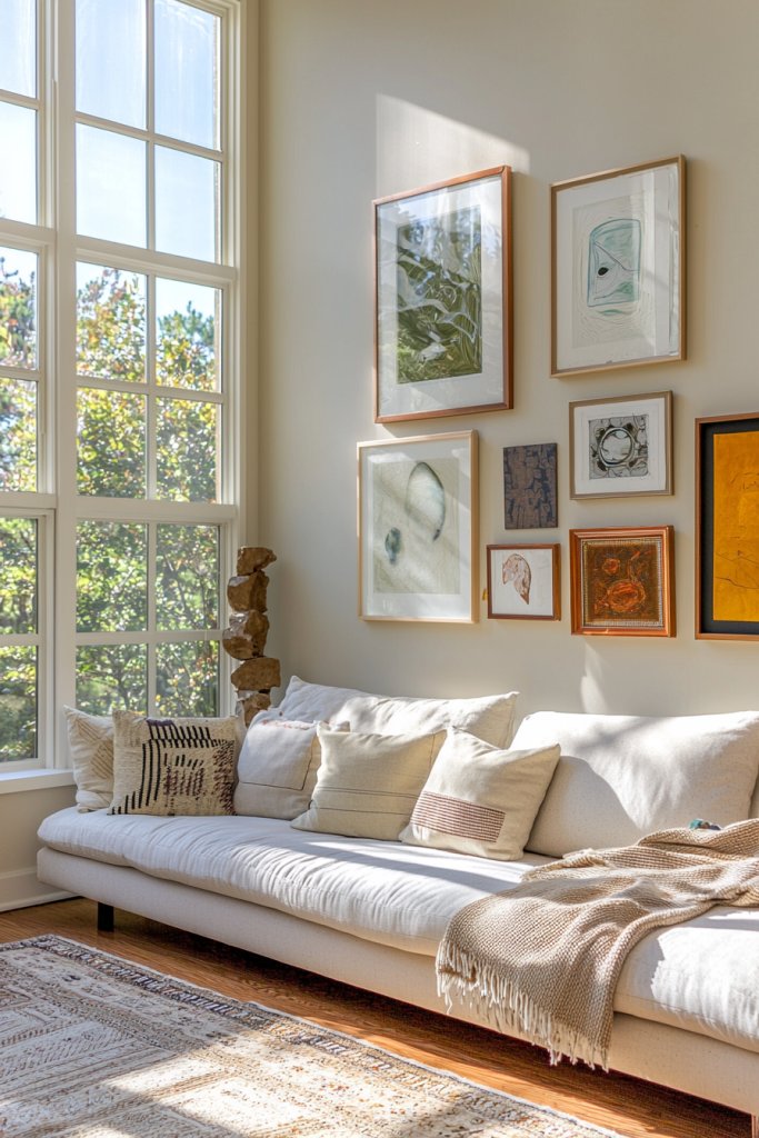 • Design gallery walls with a mix of frame styles and sizes to showcase personal narratives and transform blank spaces into visual stories.