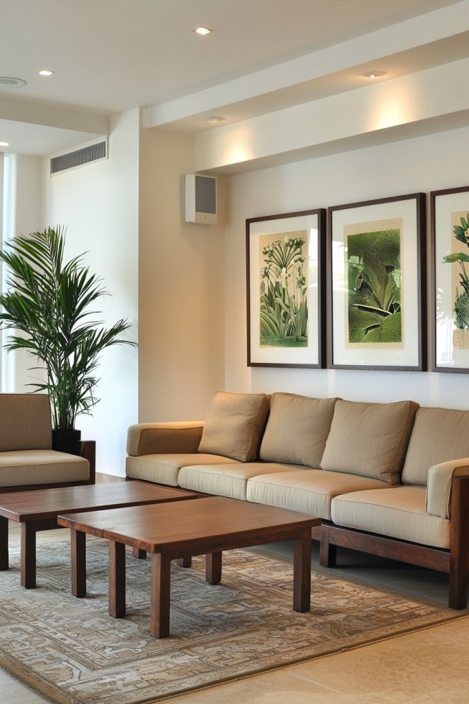 Wall-mounted plants can transform an ordinary wall into a lush sanctuary, making your living room a serene escape while showcasing your personal style. So go ahead, let nature take center stage!