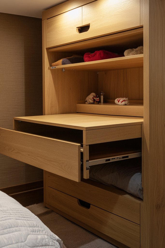 Picture a sleek loft bed with built-in drawers underneath, doubling as storage and a sleeping area. Or a fold-out desk hidden behind a panel that pops open when needed. These pieces are designed to maximize utility while maintaining a clean, modern look. The furniture blends seamlessly into the space, making it feel larger and more organized. The key is clever design that’s both functional and attractive.