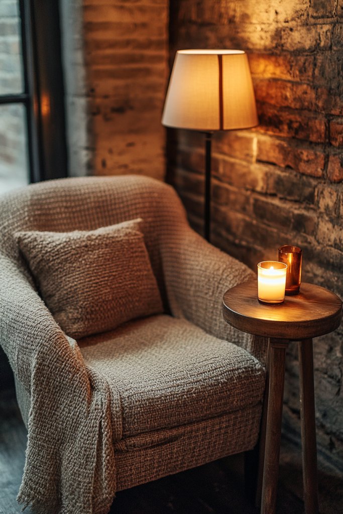Select a quiet corner with good natural light or where you can add soft lighting. Place a comfortable chair or a small sofa with supportive cushions. Add a side table or a small bookshelf nearby to keep your favorite reads accessible. Incorporate a warm, textured throw and cushions for extra coziness. Keep the area clutter-free for a true retreat.