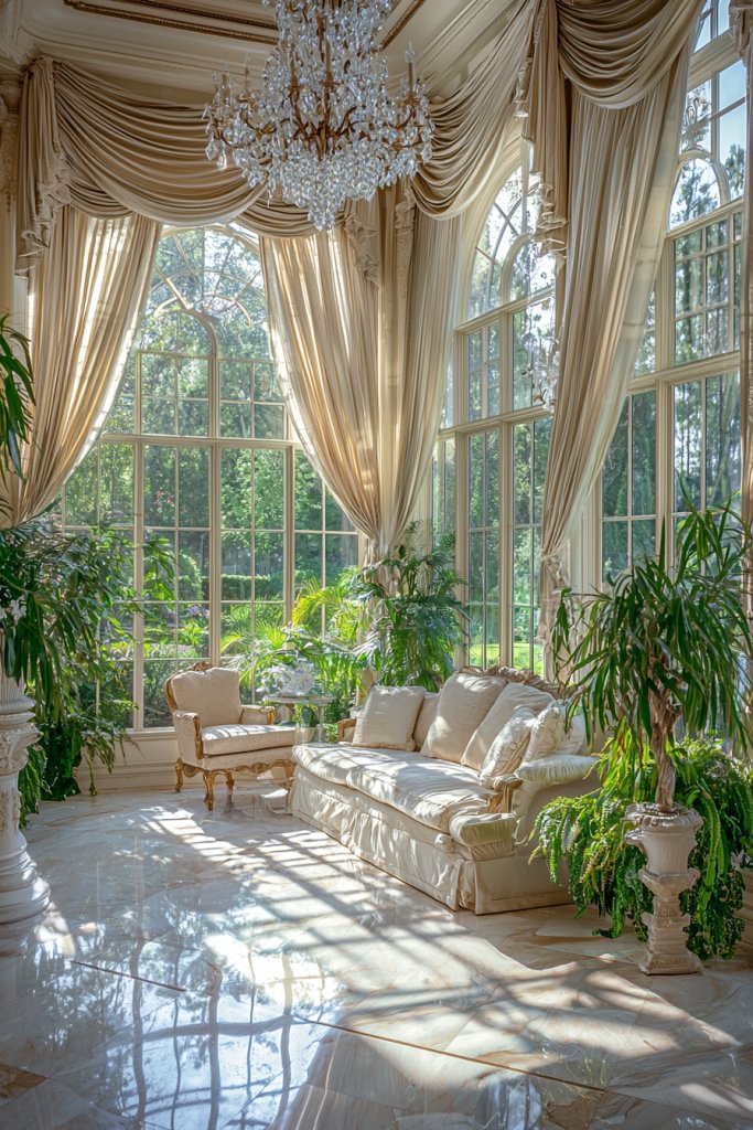 The expansive glass not only enhances your connection to the environment but also amplifies the feeling of spaciousness, making even a small area feel grand. Incorporating plush furnishings and calming colors can further elevate this oasis, inviting relaxation and peace. A sunroom with these opulent details isn’t just an addition; it’s a lifestyle choice, blending luxury with nature in perfect harmony.
