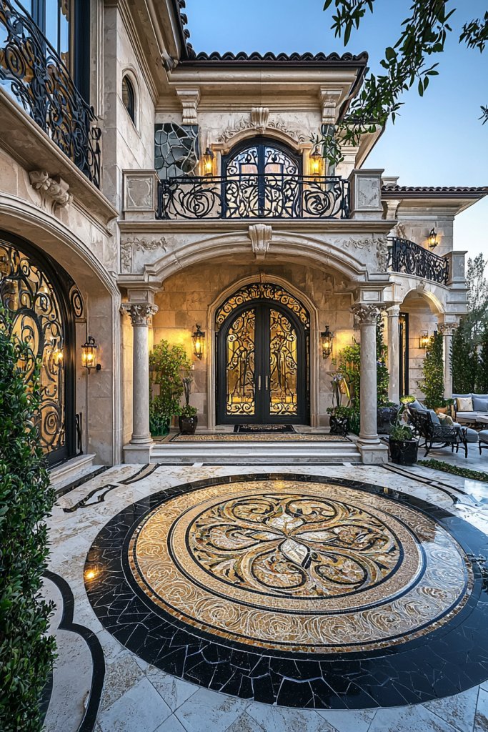 • Grand entrance foyers with stunning chandeliers and polished marble floors create an elegant first impression in luxury mansions.