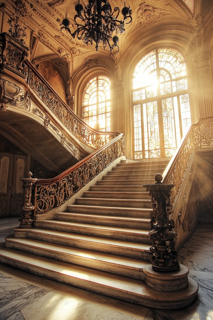 A stunning staircase can serve as the centerpiece of your home, much like an artistic accent wall. Imagine ascending a majestic staircase, its grand railings crafted from exquisite materials like wrought iron or polished mahogany, each detail telling a story of elegance.