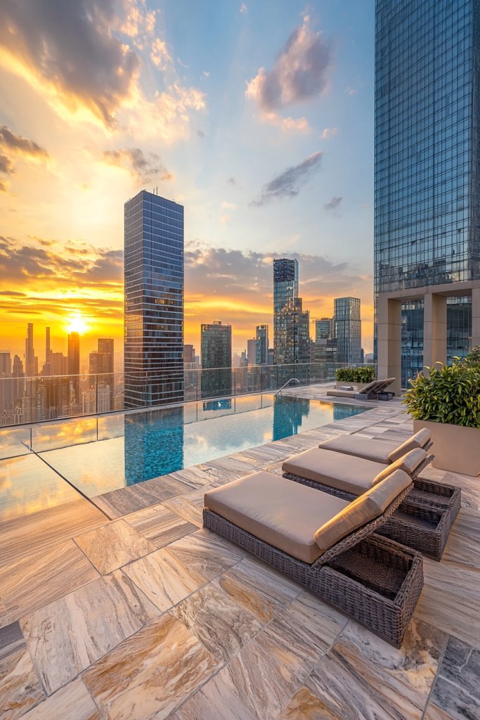 These terraces can be adorned with lush greenery, stylish furniture, and ambient lighting, creating an inviting atmosphere for both relaxation and entertaining. Picture hosting friends for sunset cocktails, the city lights twinkling below as you share laughter and stories.