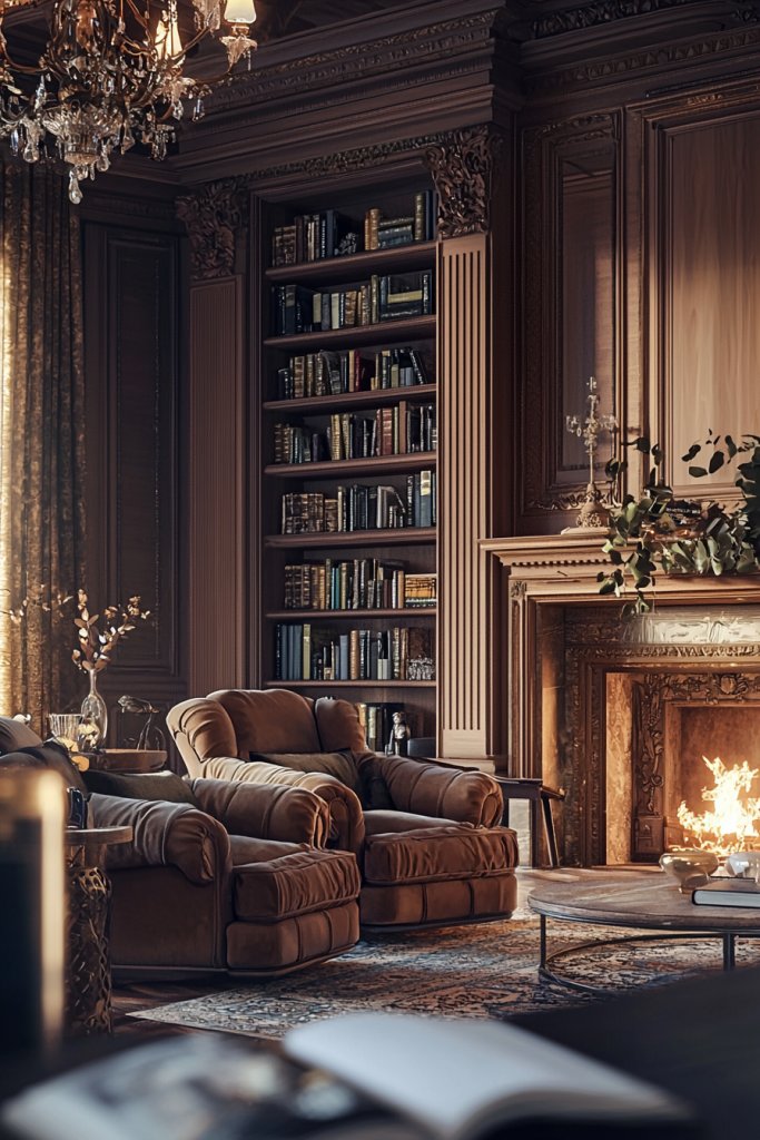 With plush seating options, you can lose yourself in a good book, enveloped by the subtle scent of polished wood and leather. Thoughtfully placed lighting highlights your collection and creates a cozy nook ideal for late-night reading.