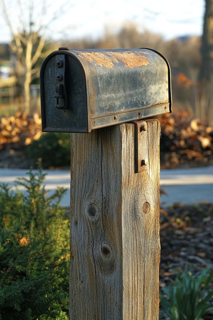 Picture a weathered wood panel attached to your mailbox or post, with rough edges and visible grain for authenticity. Or think of a small reclaimed wood sign painted with your family name or house number, mounted with vintage hardware. These accents evoke a sense of history and craftsmanship. The natural textures and warm tones add depth and character.