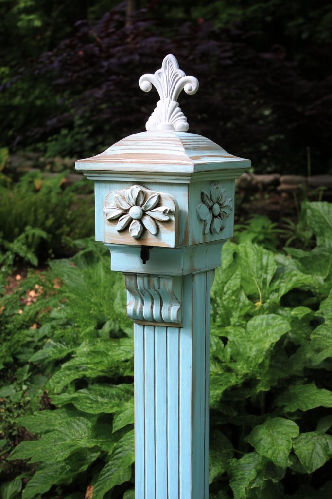 3. Add a Charming Mailbox Post with Decorative Finials or Paint Accents