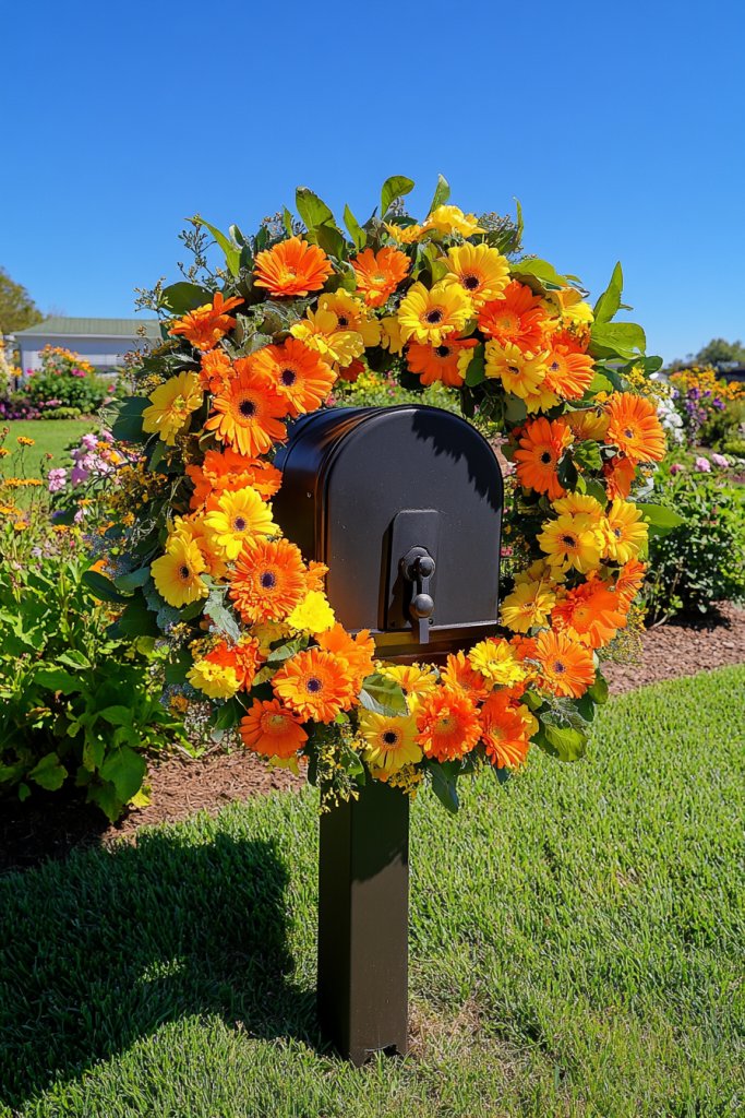 Picture a lush arrangement of autumnal mums, pumpkins, and faux corn stalks framing your mailbox in fall. Or a vibrant wreath of fresh spring blooms and greenery hanging on a decorative post. The textures, colors, and natural elements add life and charm, transforming a mundane mailbox into a focal point of your landscape.
