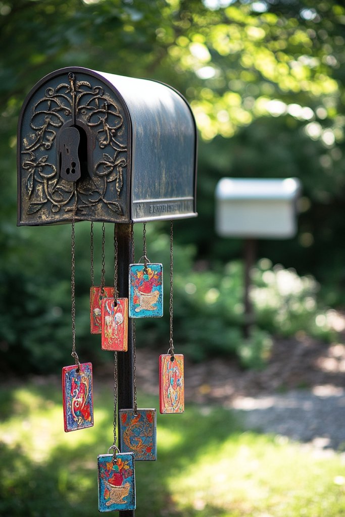 Want to add a bit of whimsy and gentle sound to your entryway? Hanging a small wind chime or decorative tag from your mailbox or post can make your curbside more lively and inviting. It’s a simple way to add personality and a relaxing auditory element. Who doesn’t love a little music with their mail?