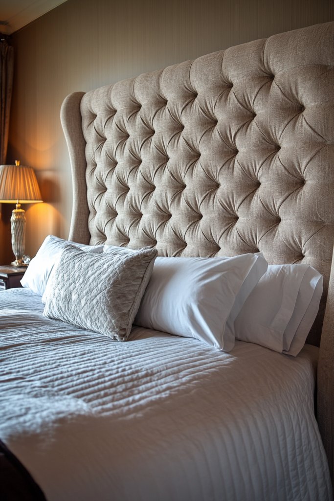 Picture a plush, tufted velvet headboard in a deep jewel tone, or a sleek wooden panel with geometric carvings. It extends beyond the width of your mattress, commanding attention and anchoring the room. Soft lighting highlights its texture, making it look luxurious and inviting. Pair it with crisp bedding and coordinated accents for a cohesive, stylish look that draws the eye.