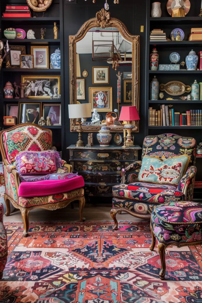 Building on the vibrant layers of textiles, statement furniture pieces serve as the bold anchors of a maximalist space. Imagine a plush, oversized velvet sofa in a rich jewel tone, inviting you to sink in and relax. Pair it with a sculptural coffee table that commands attention—maybe a hand-carved wooden piece or one made of sleek metal. These standout items don’t just fill a room; they tell a story. A vintage armchair, upholstered in an eclectic fabric, can create a conversation starter, while a unique bookshelf in an unexpected shape adds both functionality and flair. Consider a dramatic dining table, perhaps in marble or reclaimed wood, that sets the stage for lively gatherings. By choosing furniture that speaks volumes, you’ll establish a cohesive yet dynamic atmosphere, encouraging creativity and self-expression in your home. Embrace the unexpected, and let these statement pieces shine!