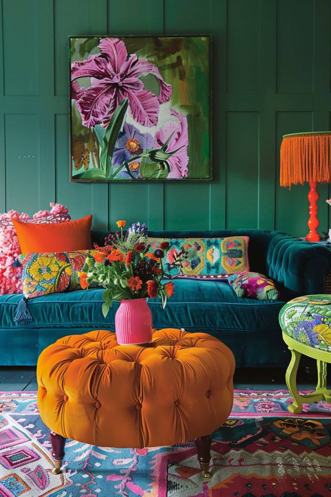 To truly embrace the spirit of maximalism, you can’t shy away from bold color combinations that energize a space. Think vibrant pinks paired with deep emerald greens, or sunny yellows alongside rich blues. These striking contrasts create a dynamic atmosphere that draws the eye and sparks conversation.