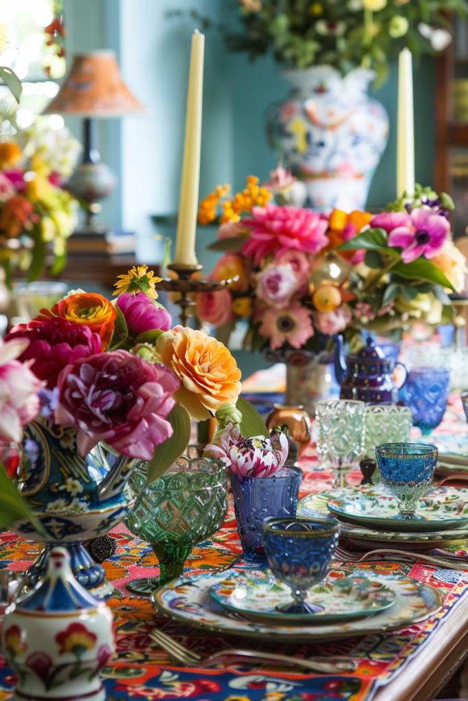 Bohemian vibes can seamlessly extend to your dining experience, where artistic table settings become a canvas for self-expression. Imagine a table adorned with an eclectic mix of vibrant patterns and textures, from hand-painted ceramic dishes to mismatched glassware that sparkles in the light. Layering textiles—think rich, colorful table runners over natural linens—adds warmth and depth, inviting your guests to revel in the creative chaos.