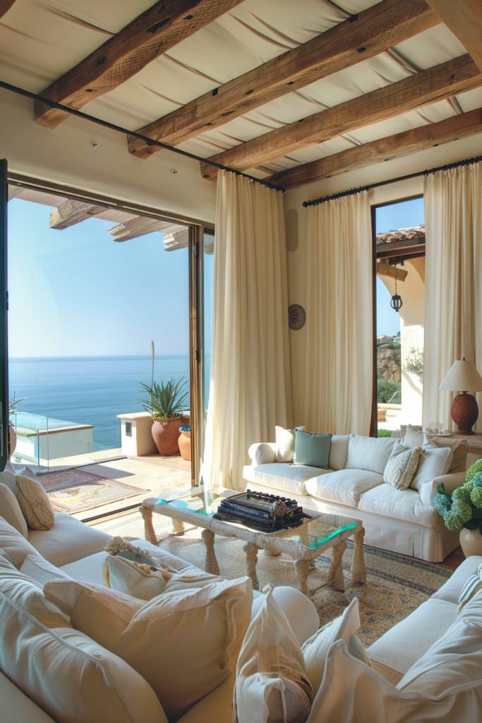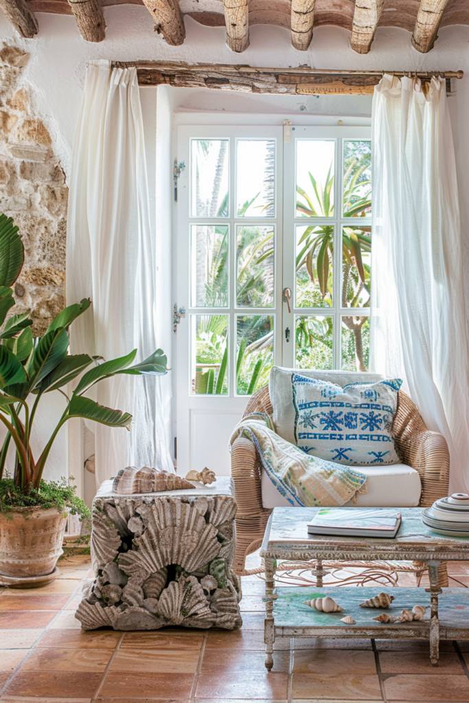 With these elements, you’ll effortlessly blend Mediterranean warmth with coastal charm, creating a home that feels both inviting and invigoratingly breezy.