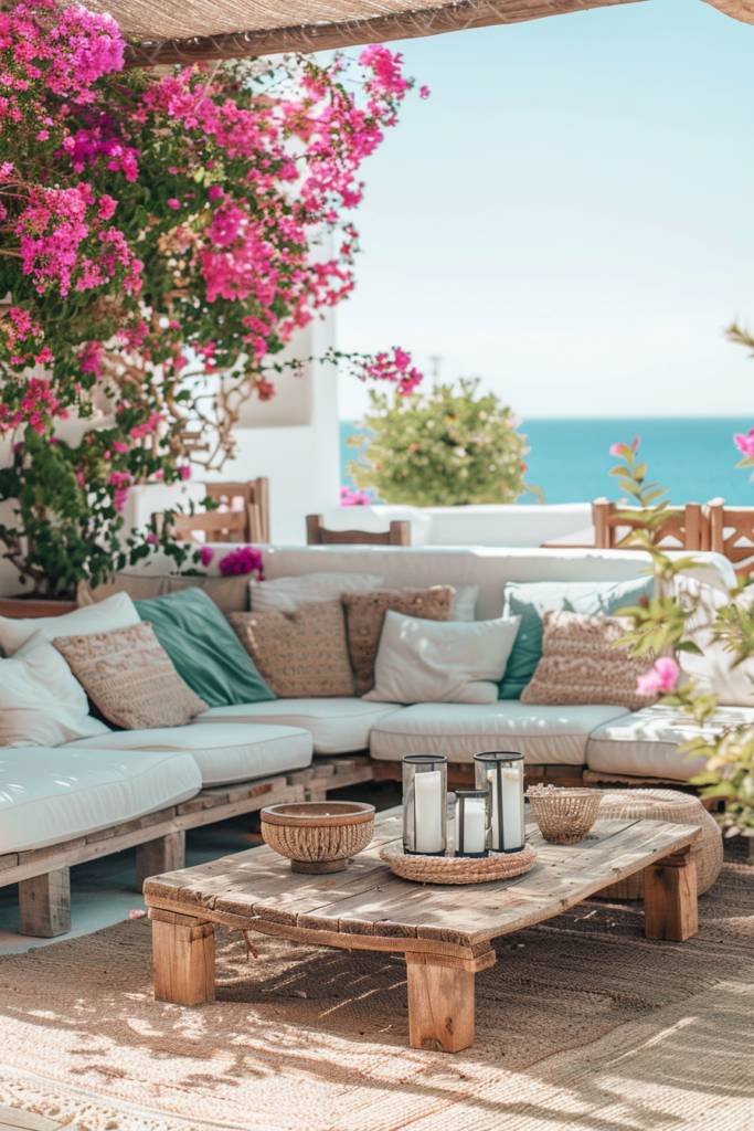 Incorporate natural elements like terracotta pots filled with aromatic herbs or colorful flowers to evoke a Mediterranean garden. A stylish outdoor rug can define the space, while a shade umbrella or a pergola offers respite from the sun. Don’t forget ambient lighting; string lights or lanterns can create a magical atmosphere as the sun sets.