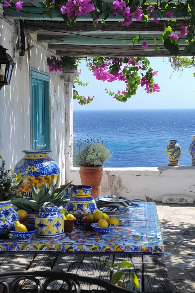 Once you’ve embraced light fabrics to capture the airy essence of the Mediterranean, it’s time to introduce vibrant ceramics that bring a splash of color and personality to your decor. Think hand-painted tiles, whimsical plates, and bold vases that echo the hues of the sea and sun. You can mix and match these pieces to create a dynamic display, whether they’re on a kitchen shelf or adorning your dining table.