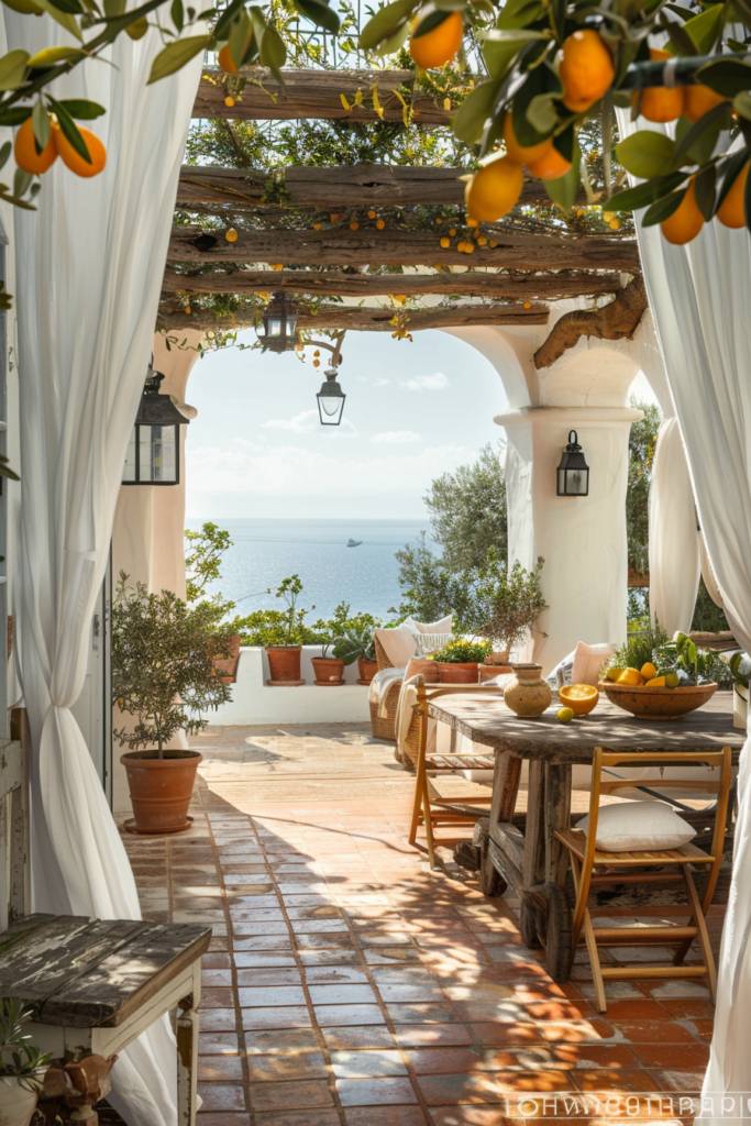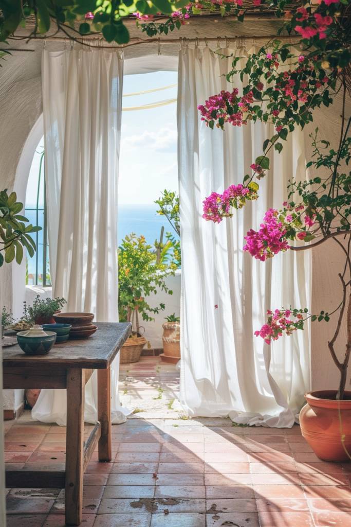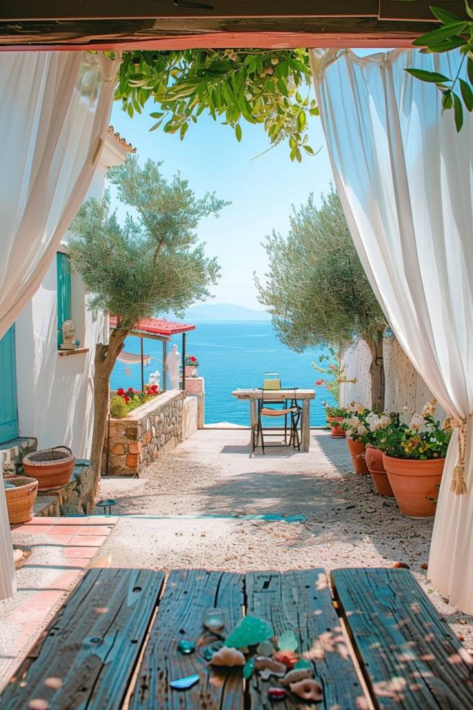 To enhance the charm, drape sheer fabrics that flutter gently with the sea breeze, or hang delicate fairy lights for a soft, inviting glow. Incorporate potted herbs like basil or thyme to bring a touch of the outdoors in, filling the air with their invigorating scents.