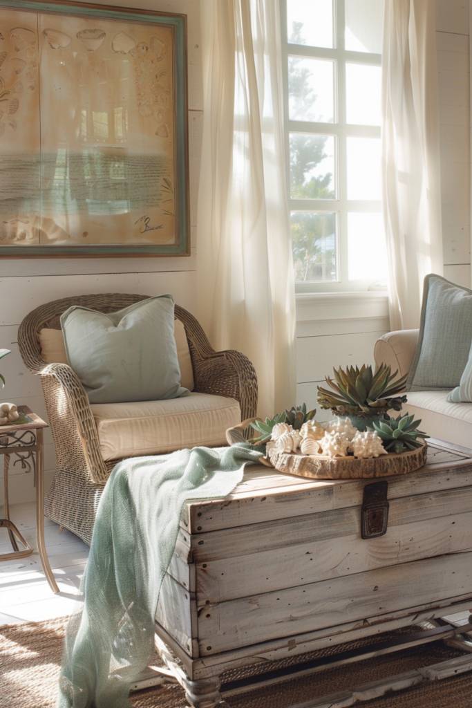 Opt for a reclaimed wood coffee table, with its natural imperfections that echo the rugged coastline. This not only enhances the coastal vibe but also serves as a striking focal point in your living area. You might even choose a handcrafted bench, perfect for lazy afternoons or evening chats under the stars.