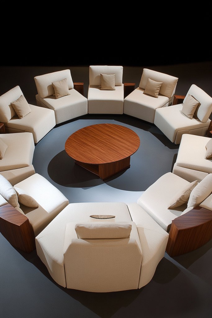 Imagine a set of modular pieces—sectional units, ottomans, or armless chairs—that can be pushed together or separated. They’re upholstered in neutral fabrics with clean lines and simple shapes. During a movie night, arrange them into a U-shape; for a party, spread out the pieces for mingling. The setup is always adaptable, always stylish.