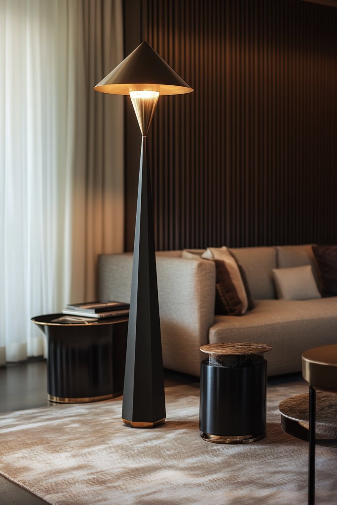Does your living room need a lighting upgrade that also serves as art? Statement floor lamps with geometric bases combine function and design effortlessly. They brighten your space while acting as a sculptural focal point. This dual purpose adds personality and ambiance.