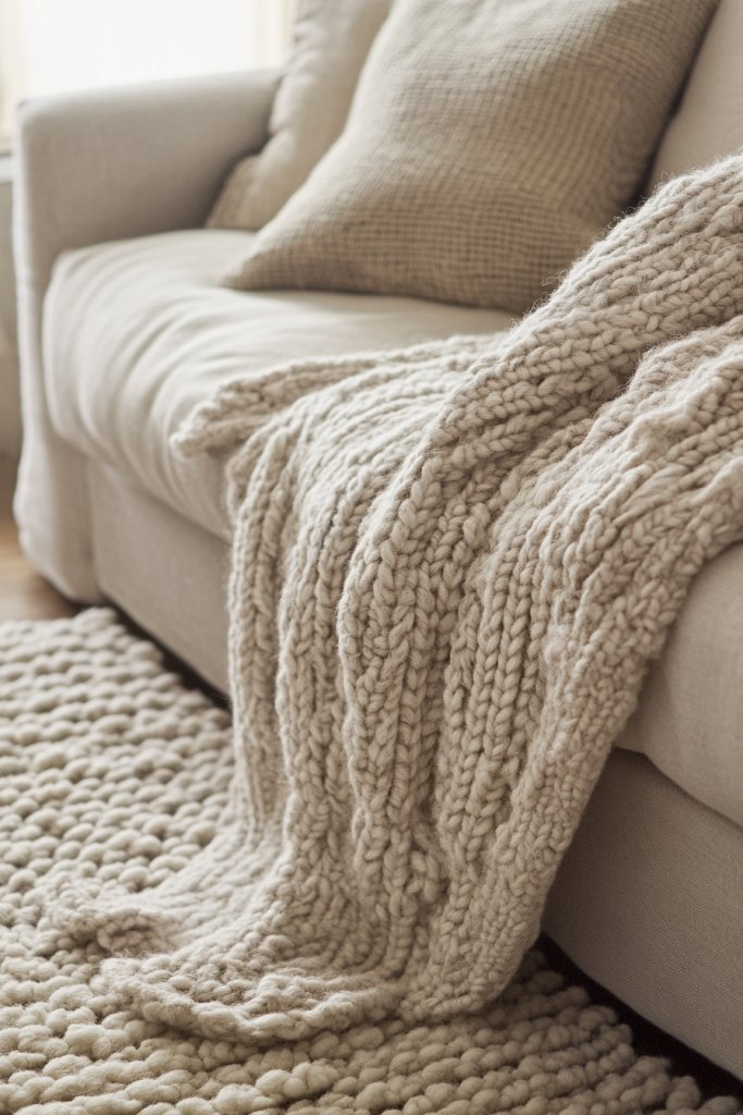 19. Add Subtle Textural Elements with Knitted Throws and Soft Rugs
