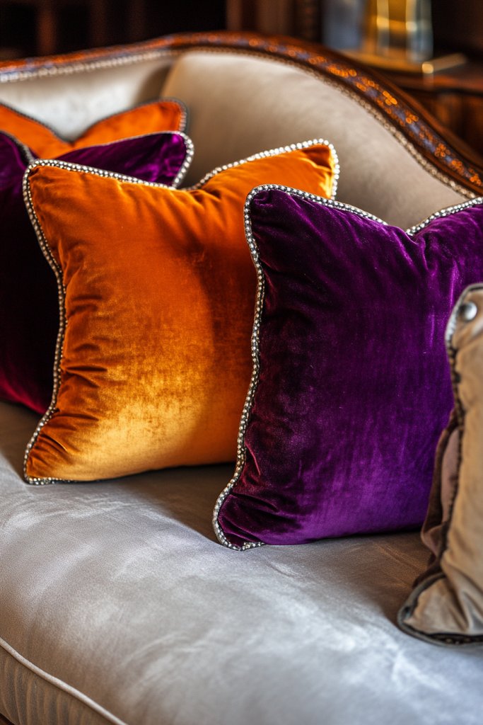 9. Incorporate Retro-Inspired Velvet or Leather Accent Pillows
