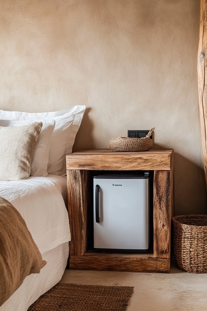 1. Compact Mini Fridge Built Into a Custom Nightstand for Seamless Access