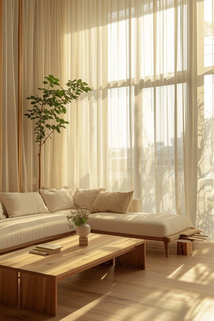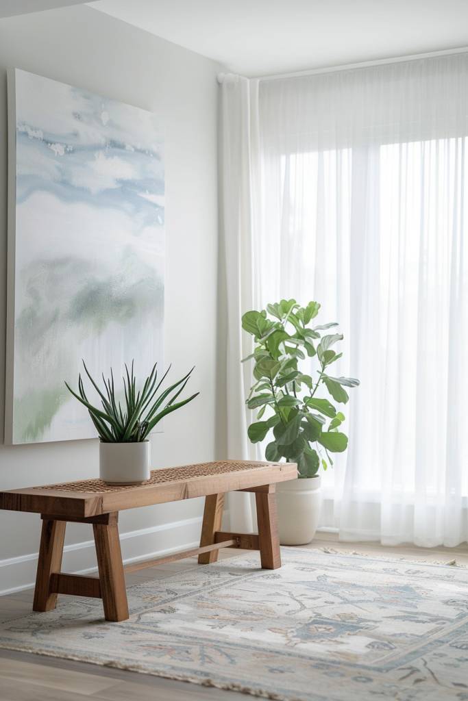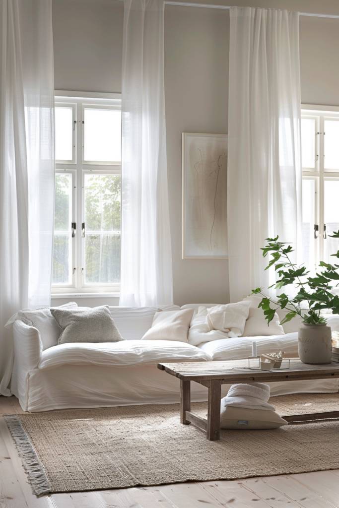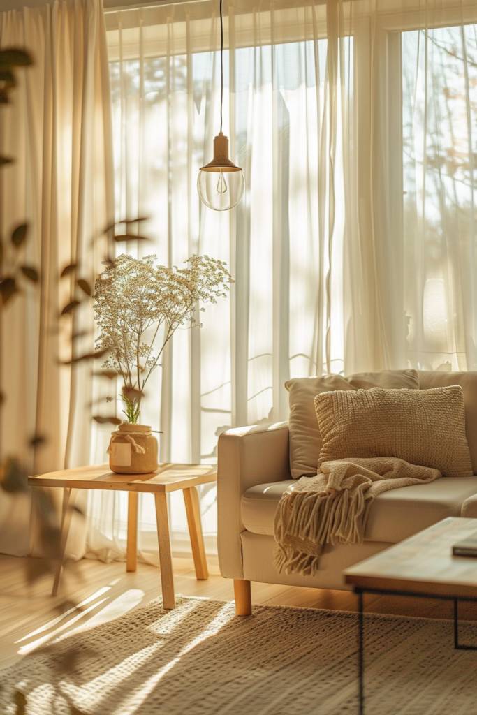 Consider lightweight curtains that gently diffuse sunlight, allowing a soft glow to fill the space while maintaining a sense of openness. Regarding rugs, select those with subtle patterns or solid colors to ground the room without overwhelming it.