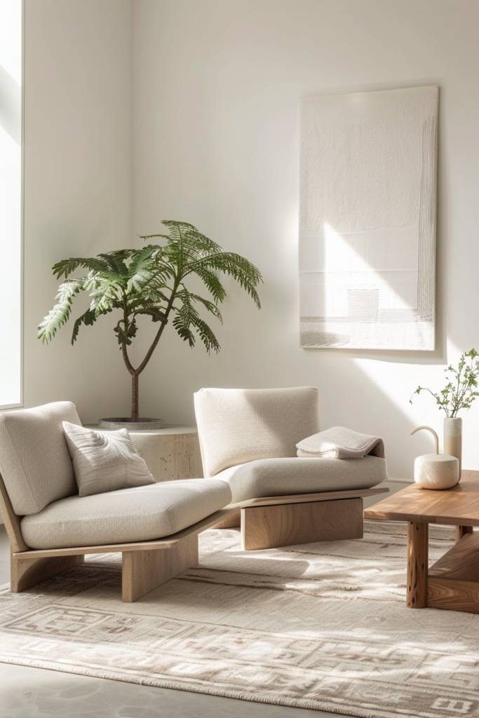 Look for furniture with clean lines and neutral colors, reflecting simplicity and serenity. Natural materials, like wood or metal, add warmth and texture, grounding your space in elegance.