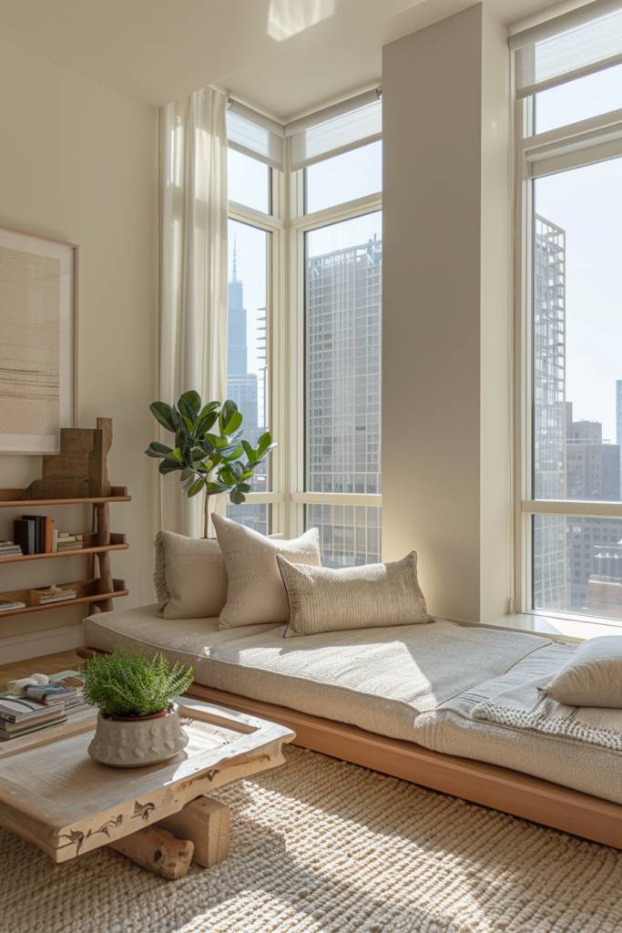 Incorporate glass decor elements, like a coffee table or light fixtures, which can refract sunlight beautifully, adding to the aesthetic appeal. Finally, don’t forget about houseplants; they’re not just for decoration, they thrive in natural light, bringing a touch of nature indoors while purifying the air. Embrace natural light, and watch your minimalist room flourish with warmth and tranquility.