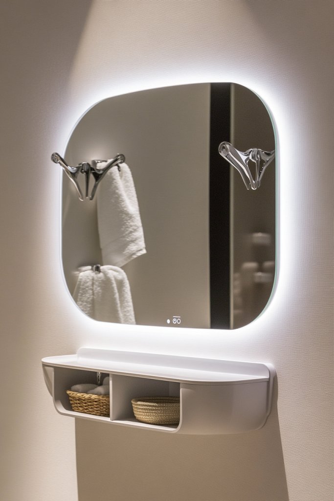 Imagine a sleek mirror with a row of hooks underneath or a concealed shelf behind the reflective surface. It holds keys, hats, or towels, keeping essential items within arm’s reach. The mirror’s surface remains clean and uncluttered, while the storage features add a layer of visual interest. It’s both a storage solution and a design statement.