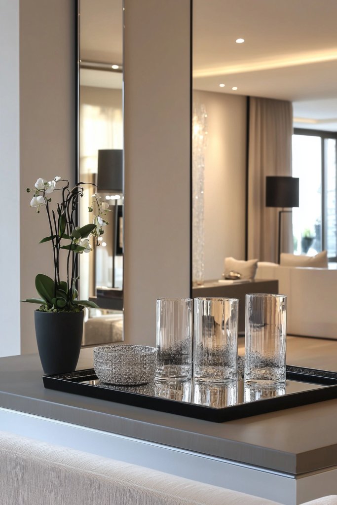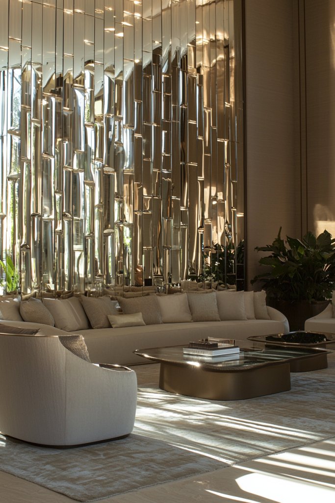 A mirrored accent wall not only enhances your room’s aesthetics but also invites a sense of elegance and depth. It’s a trend that’s both timeless and contemporary, making it perfect for any style.