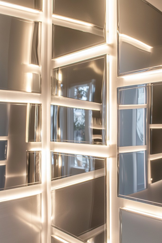 You can choose from large panels that create a sleek, modern vibe or an arrangement of smaller mirrors for a more eclectic touch. Consider incorporating various shapes and sizes to add visual interest, or opt for a seamless design for a sophisticated look.