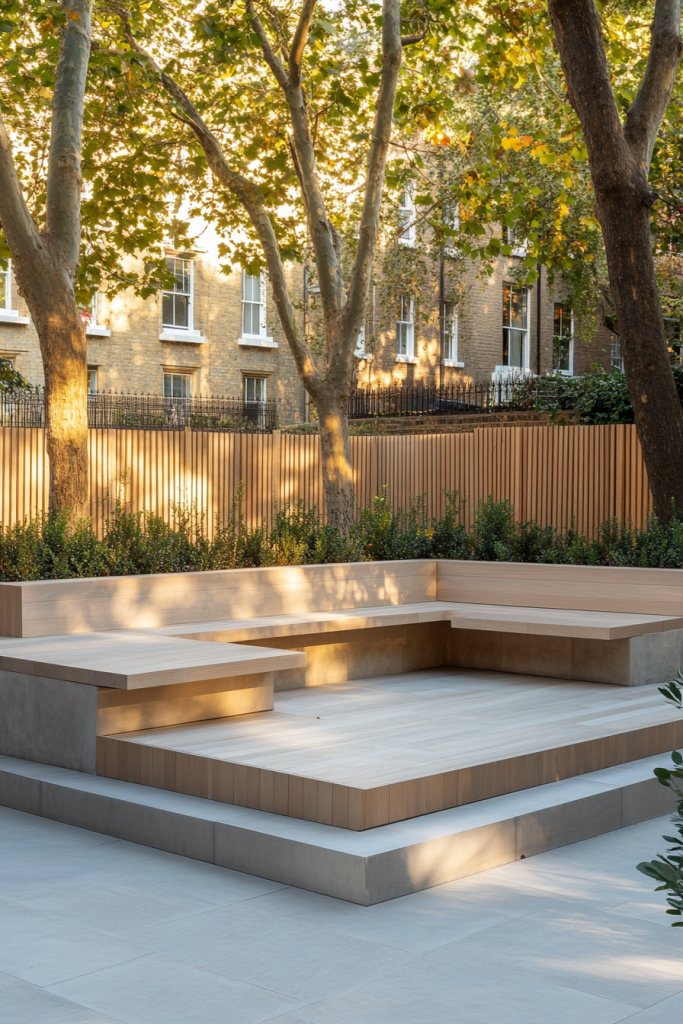 You can customize the built-in seating with different heights or add side tables for convenience. Seasonal accessories, like colorful cushions or outdoor rugs, allow you to shift the look easily.