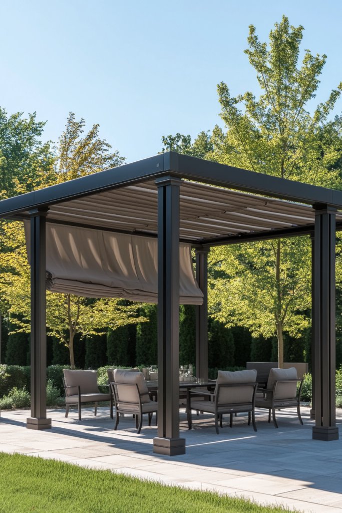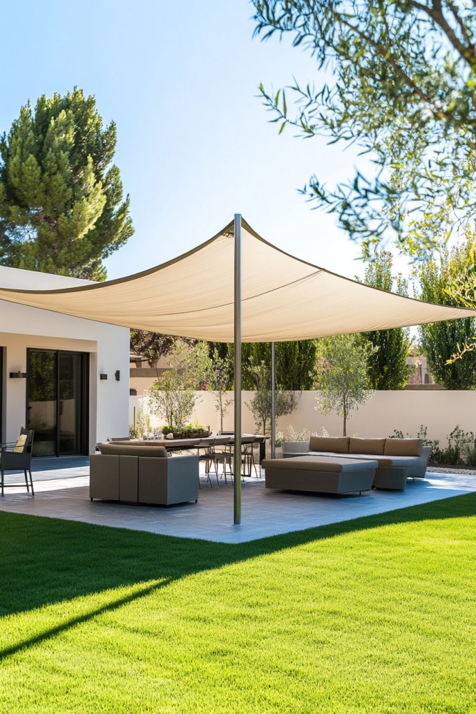 Add a pergola or shade sail for sun protection, or leave it open for full sunlight. Seasonal touches like lanterns or wind chimes can enhance the experience.