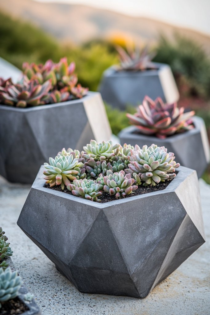 These artistic planters become focal points that showcase your taste and style. Artistic concrete or stone planters with succulents prove that minimalism and artistry go hand in hand.