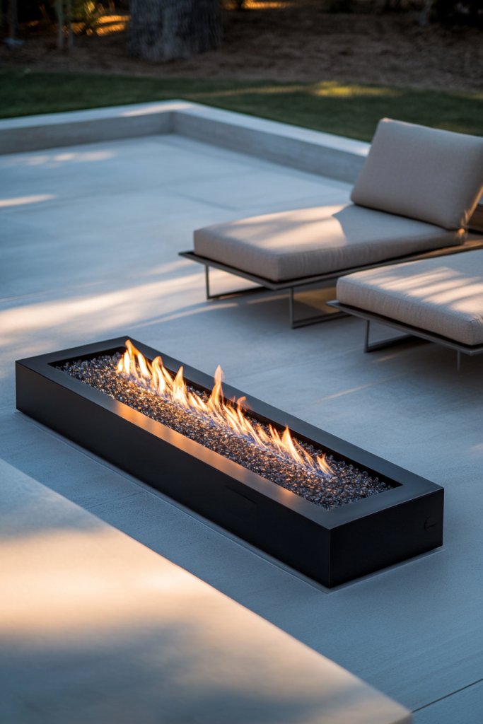 For extra style, consider a sculptural fire feature that doubles as art—a modern statement piece. A minimalist fire pit area proves that simplicity can be stunning and functional.