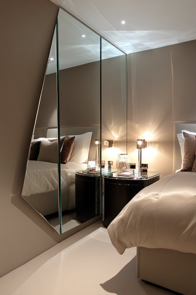 Mix and match different reflective elements—think mirrored wall panels, decorative mirrors, or mirrored furniture—to suit your taste. For smaller rooms, large mirrors or mirrored closets can double the feeling of space. In larger bedrooms, they serve as statement pieces that add depth and elegance. Use frames or edges that complement your overall decor, from sleek modern to vintage glam.